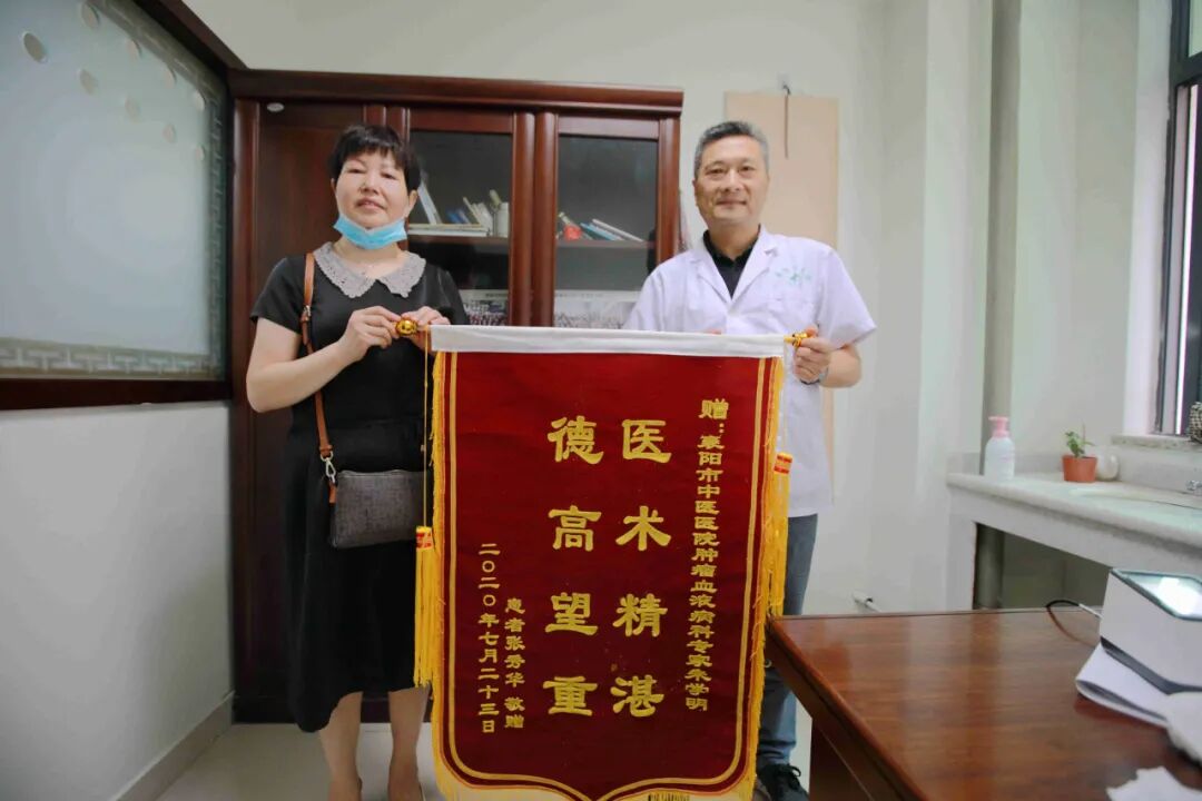“感谢上天的眷顾,让我遇到了朱大夫,将我从痛苦中解救出来,恢复正常生活。”近日,襄阳市中医医院国医堂专家诊室内,上演了感人一幕,正处于恢复期的肿瘤患者张秀华将一面写有“医术精湛、德高望重”的锦旗送到了该院肿瘤、血液病科主任朱学明的手中,并饱含热泪再三感谢朱主任及相关医护人员对她的精心治疗和护理,让她对生活再次充满了信心。