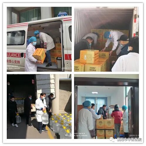 ▲药学部组织人员搬运捐赠物资疫情期间,各科室对消毒用品需求量很大,且湖北境内封城封路,药学部积极联系业务往来多家企业及药厂,药库职工亲自上门拉货,每次物资运送车到医院,党员干部、职工齐心协力卸货、搬运、入库。药库为临床一线发放消毒用品75%酒精、含氯消毒片、84消毒液等近3万余瓶。