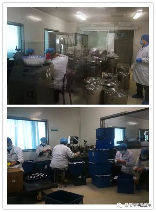 由于需求量大,饮片、包装材料库存不足,药学部积极联系供应企业,从河南、英山等地调回大量原料,从随州运回包装材料,紧急联系总务科全市范围内筹集标签。制剂室迅速进入抗疫“战时状态”,弹性安排工作人员,实现无缝连续生产。除采用多功能提取罐批量生产外,另增加四个夹层锅同时生产,扩大产能日产量近4000瓶。疫情防控期间,累计生产1号方2万余瓶,2号方5万余瓶。门诊西成药房配合市防控指挥中心,每天发放2000余服预防方,保证了疫情防控需求。疫情紧迫,医院连夜改造25、26区感染病房,并增设28、29隔离病区。组织院内相关专家自拟新冠肺炎熏蒸方及发热病区患者服用中药,由住院中药房负责每日的调配。煎药室负责煎煮并配送到隔离病区、感染病房,累计煎煮配送新冠肺炎外用熏蒸方1300服、口服中药3400服。门诊中药房为一线医务人员发放预防方免煎800余服,配方颗粒1000余盒,每日调配中药700余服。中医药是中华民族的瑰宝,在这场疫情中,预防与治疗临床评价凸显。