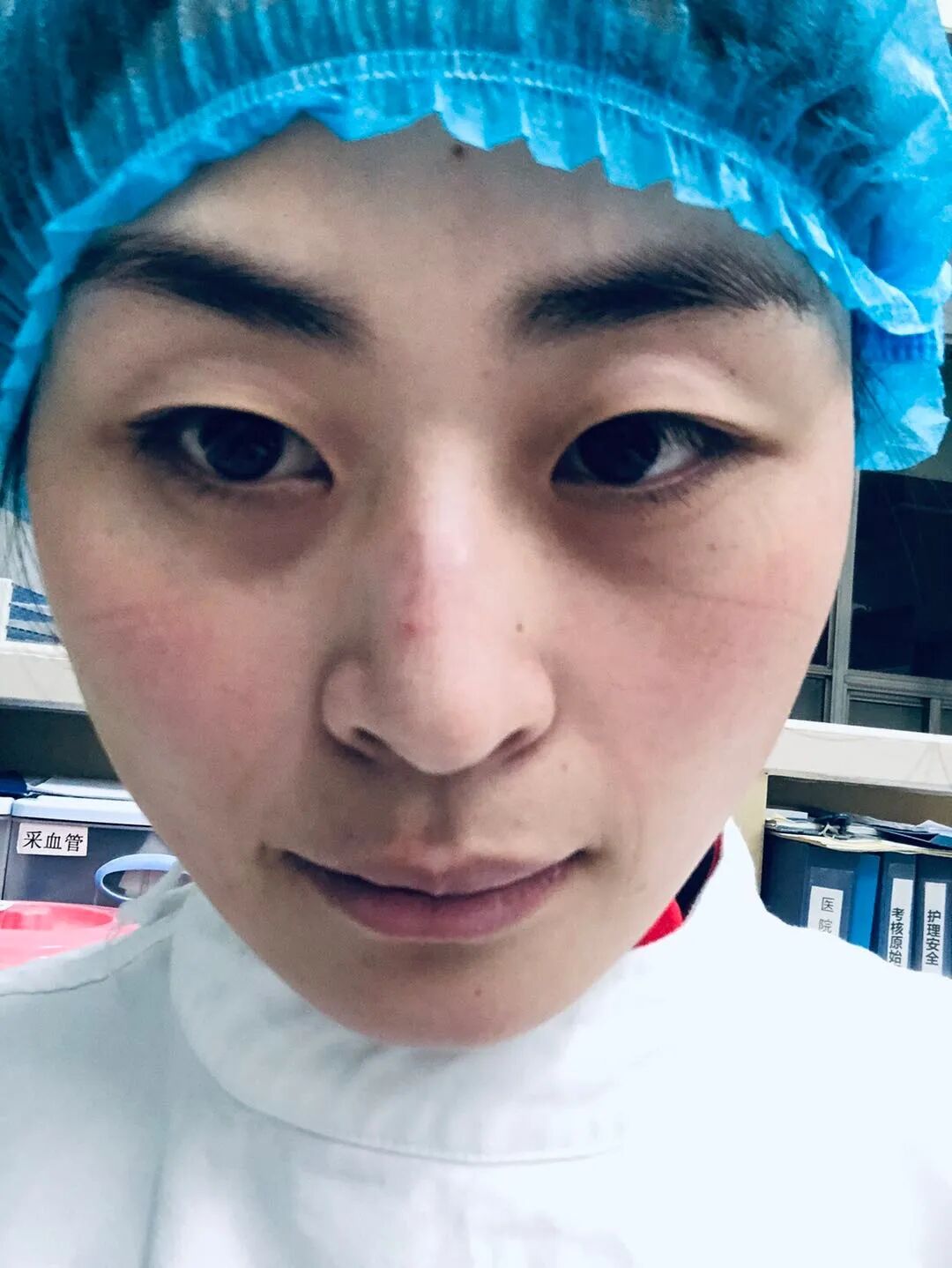 王晓冬是襄阳市中医医院护理部干事,1月23日,她作为第一批抗击疫情请战的护理人员,在市传染病医院紧急支援。王晓冬工作近三周时间里,逐步掌握了新冠肺炎患者的护理心得,在完成好护理工作的同时,兼顾为一些焦虑、无助的患者进行心理疏导。▲取下防护口罩后,王晓冬鼻梁和脸上的压痕让人心疼。2月14日,刚从襄阳市传染病医院下班的王晓冬接到医院将组建医疗队驰援武汉市中医医院的通知。王晓冬立即报名,收拾行李,于第二天上午跟同事一起冒雪启程,踏上援“汉”之路。