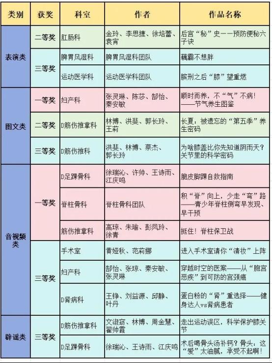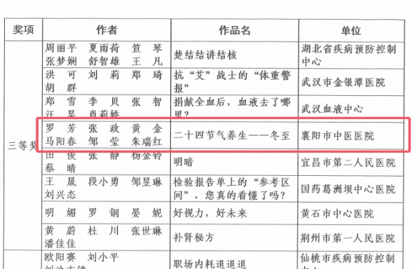 护理部副主任刘瑜表示,医院始终高度重视健康教育和科普宣传工作,此次健康科普作品在省级、市级获奖,充分展现了医院在健康科普领域的整体实力。医院将以此次获奖为契机,秉持“科普为民”的初心,继续聚焦公众健康需求,积极创作更多接地气、有温度、高品质的中医健康科普作品,让中医药健康知识更好地服务广大群众,为提升全民健康素养、助力健康襄阳建设贡献更多中医力量。