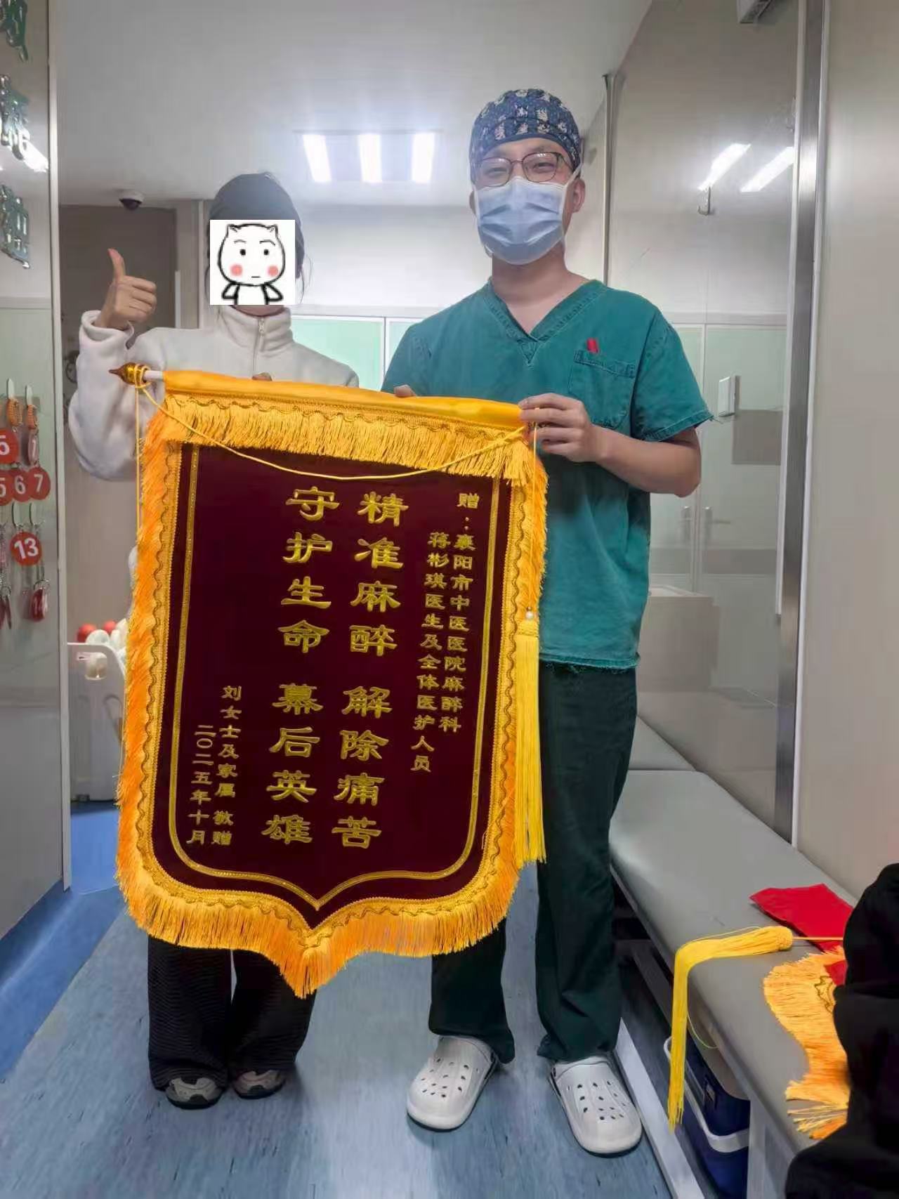 近日,襄阳市中医医院麻醉科医生蒋彬琪收到一面来自产科患者的锦旗,“精准麻醉,解除痛苦,守护生命,幕后英雄”的烫金大字,不仅承载着患者的感恩之情,更凸显了麻醉医生在临床诊疗中的重要作用。