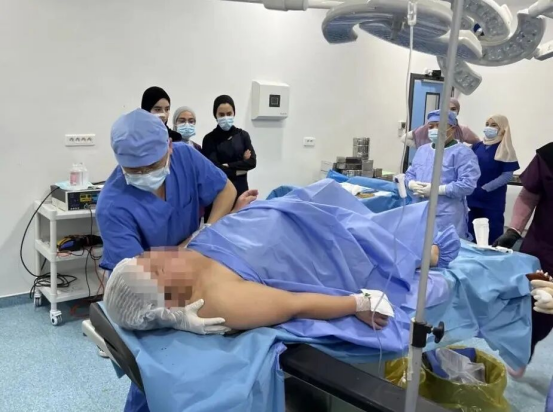 根据湖北省卫健委统一安排,2023年9月,曹雅军随湖北省第28批援阿尔及利亚医疗队前往塞地夫大学附属母婴医院工作,开启为期两年的援外医疗工作。初到阿尔及利亚,面对语言不通、物资匮乏、气候干燥、饮食习惯差异等多重挑战,曹雅军克服重重阻力,与当地医护人员并肩作战,仅用一个月时间便实现与当地医护及患者手术配合、诊疗方案沟通等,促进了团队协作,为医疗工作的有序开展筑牢基础。