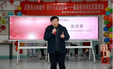 活动伊始,医院副院长张育葵发表致辞,首先向所有患者及家属致以最真挚的节日问候与康复祝福。他指出,医院始终坚持以患者为中心,在深耕患者功能康复诊疗的同时,高度重视人文关怀体系建设,并表示在新的一年,医院将坚守人文关怀初心,创新康复服务模式,用专业与温度为患者的康复之路保驾护航,推动科室发展再上新台阶。
