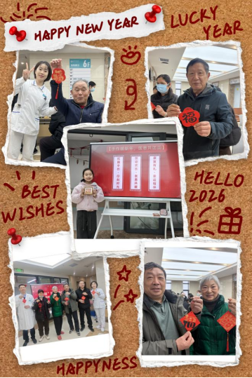 美好定格,温情延续。最后,全体患者及家属与医护人员手持拓印福字合影留念,定格下医患同心的温暖瞬间,将这份特殊的新春记忆珍藏。阳国彬叮嘱大家在春节期间做好健康防护,坚持规范治疗。科室医护团队始终秉持“以患者为中心”的服务理念,在精准施治、科学管理的同时,更注重患者的心理疏导与情感关怀。此次活动不仅是科室人文护理的生动实践,更是医患同心、共抗病魔的温情写照。新的一年,科室将继续坚守初心,用专业的医术守护健康,用温暖的关怀陪伴患者,让医患之情在岁月流转中愈发深厚,让每一位患者都能在治疗路上感受到希望与力量。(肿瘤科•血液病科二科贾丽媛 郝洋 贾青月)