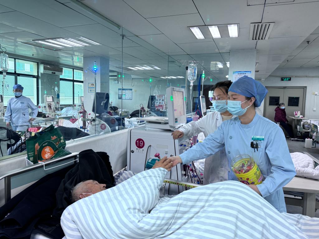 新春佳节,万家团圆,襄阳市中医医院透析室的医护人员以坚守践行使命,以温情传递关爱。在这里,棒棒糖早已超越了童年的甜蜜回忆,化作守护生命的温情符号,承载着医护人员的专业与担当,也见证着医患之间深厚情谊,这份心意让节日变得格外温暖而有意义。(浦羽、刘林)