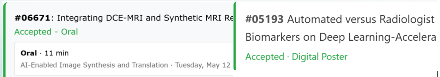 国际医学磁共振学会(ISMRM)自1994年成立以来,已发展成为全球规模最大的医学磁共振学术组织,其年度会议汇聚来自100余个国家的约6000名专家学者,堪称全球磁共振研究领域最具影响力的学术盛会。每年会议收到来自全球各大高校、医院、科研机构的近万篇投稿,经过同行评审后收录部分高水平论文摘要,其中仅不到20%会受邀作口头报告,在大会现场登台展示,含金量十足。