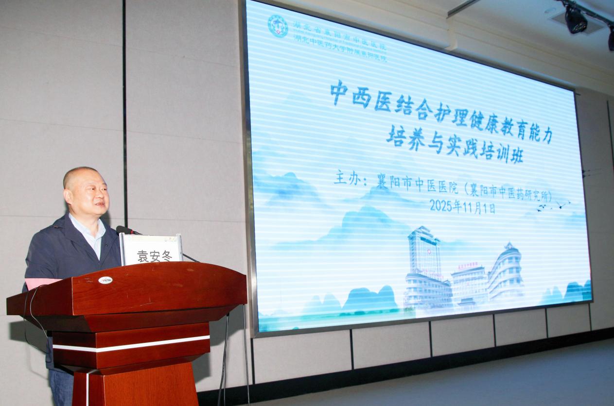11月1日,2025年襄阳市继续教育项目“中西医结合护理健康教育能力培养与实践培训班”在襄阳市中医医院举办。襄阳市中医医院副院长袁安冬、相关科室负责人以及襄阳各县市区护理专业同仁等百余人参会,共同探索中西医结合护理健康教育的新模式、新方法。