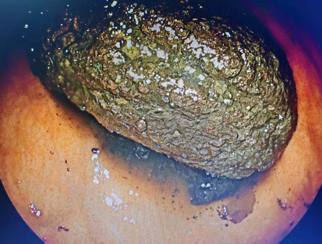 近期,30岁的小李(化姓)因腹胀、恶心伴胃脘部间歇性隐痛,到襄阳市中医医院脾胃病科就诊。经胃镜检查,发现其胃内存在一巨大结石,且胃黏膜因结石机械性摩擦形成多处焦黑色溃疡灶。消化内镜中心主任赵静带领团队为其实施了内镜下碎石治疗,借助器械将巨大的胃结石逐步分割成小块,随后喷洒碳酸氢钠溶液以促进结石溶解排出,手术用时约40分钟。术后,在该院脾胃病科住院部,通过6小时的禁食促进胃排空,并予以抑酸护胃等治疗促进黏膜修复,小李的胃石最终得以消解,腹胀、恶心等症状得到缓解。