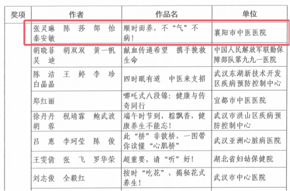 护理部副主任刘瑜表示,医院始终高度重视健康教育和科普宣传工作,此次健康科普作品在省级、市级获奖,充分展现了医院在健康科普领域的整体实力。医院将以此次获奖为契机,秉持“科普为民”的初心,继续聚焦公众健康需求,积极创作更多接地气、有温度、高品质的中医健康科普作品,让中医药健康知识更好地服务广大群众,为提升全民健康素养、助力健康襄阳建设贡献更多中医力量。