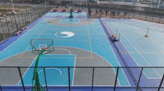 多功能运动场总占地面积约1200平方米,功能布局完善,涵盖1个标准篮球场、1个标准网球场、2个标准羽毛球场以及6个乒乓球场,并配套有健身步道及基础健身区域。