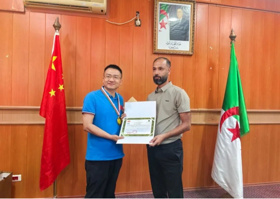 援阿两年来,曹雅军始终将保障阿尔及利亚群众生命健康、提升当地医疗服务质量作为核心使命与首要目标,在临床医疗救治、专业人才培养、先进技术推广及跨文化医疗协作等方面提供全方位的援助。担任第28批中国医疗队首例妇科腔镜手术主麻,顺利完成麻醉保障任务;在一例合并心功能不全的、高危急诊剖宫产中,制定并实施麻醉方案,成功保障母婴安全,以精湛的医疗技术和严谨的执业态度,赢得当地群众与医疗同行的高度信赖与赞誉,并获得阿尔及利亚塞地夫大学母婴医院“友谊证书”。