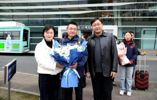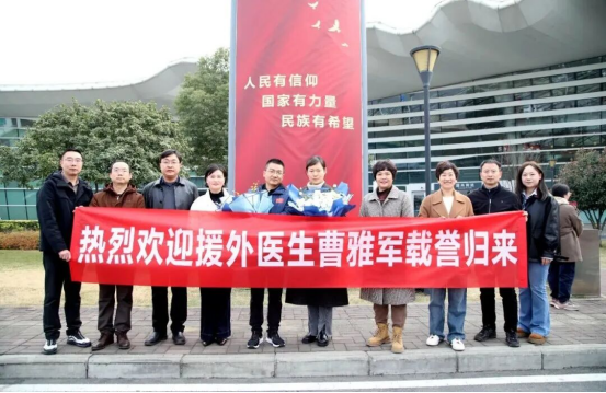 12月4日,襄阳市中医医院手术麻醉科医师曹雅军圆满完成为期2年的援外医疗任务,顺利凯旋。襄阳市中医医院副院长丁志红、张育葵及相关科室代表到机场迎接并送上鲜花和问候。
