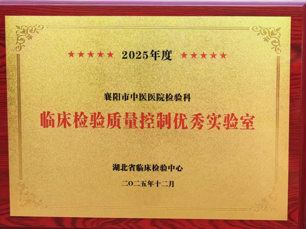 近日,2025年湖北省临床检验质量控制工作总结暨检验结果互认培训班在武汉召开,会议表彰了2025年度全省质量控制先进个人、质量控制优秀实验室和质量管理优秀单位,襄阳市中医医院医学检验科凭借过硬的专业实力与精细化管理,荣获“湖北省临床检验质量控制优秀实验室”称号。