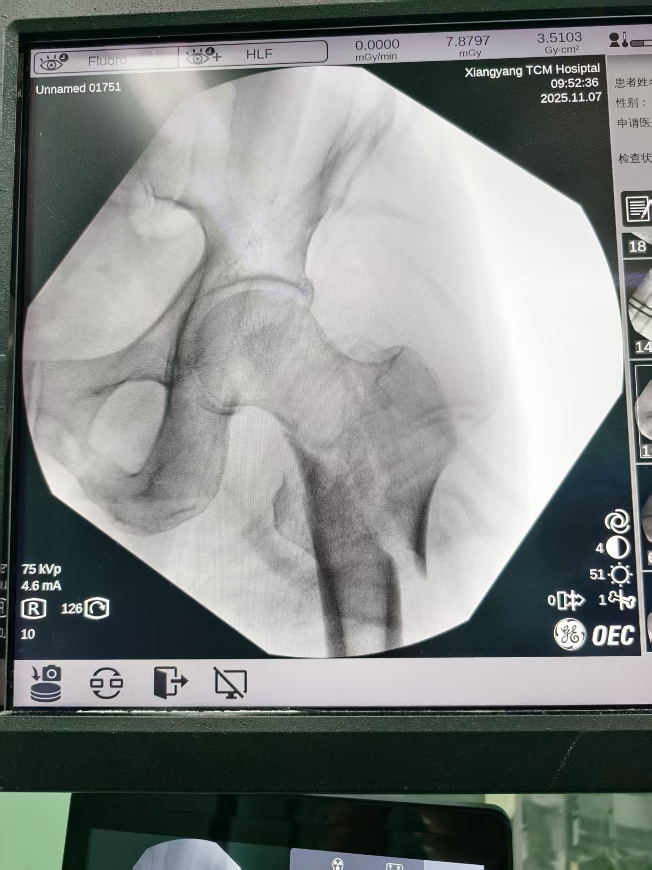 该院创伤骨二科主任孙志波接诊了李爷爷,查体发现患者左下肢呈外旋畸形,左侧腹股沟处按压痛及大转子处叩击痛明显,髋关节活动受限,拍片显示右侧股骨转子间错位1.2厘米,遂诊断为股骨转子间粉碎性骨折,需要立即手术治疗,在与患者及其家属沟通并取得同意后,孙志波将李大爷收治入院。