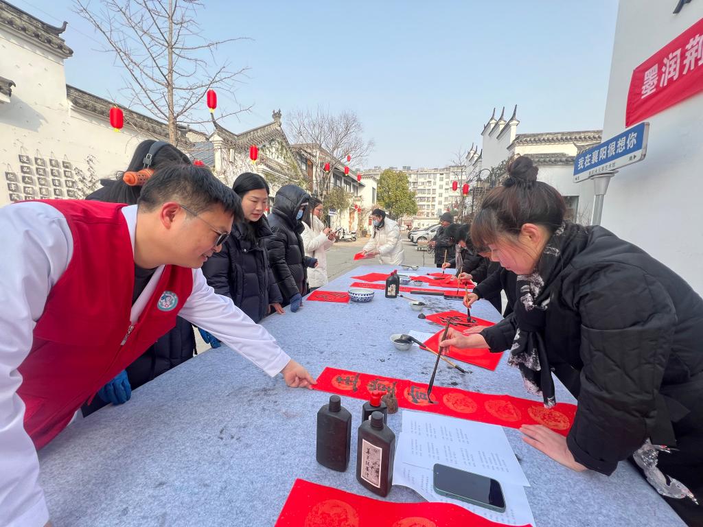 义诊团队一对一解答群众疑问,细致分析检查结果,提供个性化健康建议,同时发放护脑科普资料与新春特色茶饮等慰问品。另一边,志愿者们现场挥毫泼墨,书写一副副寓意吉祥的春联和“福”字,将新春祝福送到居民手中。让在场群众倍感温暖,纷纷称赞活动接地气、暖人心,真正把健康关怀送到了家门口。