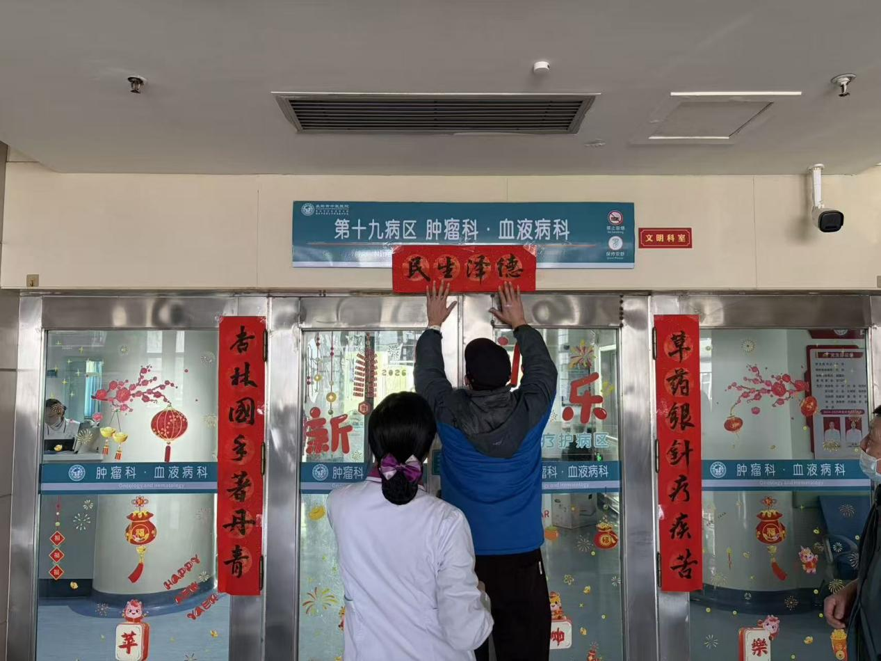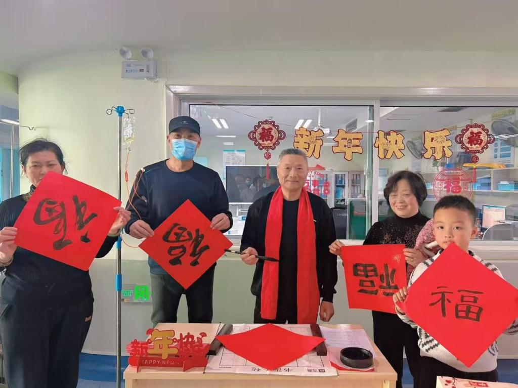 本次活动特别邀请到原肿瘤血液科主任,全国名老中医学术经验传承指导老师朱学明教授亲临现场,与科室主任付烊、护士长李瑶及全体医护人员,和住院患者及家属欢聚一堂,写春联、剪窗花、许心愿、趣抽签,以浓浓年味驱散病痛阴霾,以脉脉温情守护生命安康,送上最真挚的新春祝福。