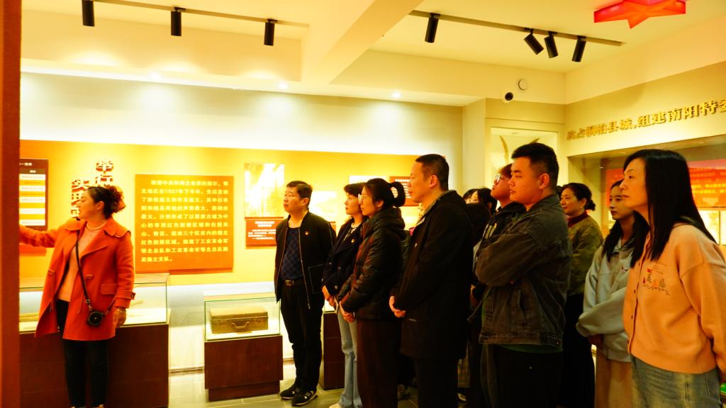 在机关四党支部书记、教学办主任卢晓苇,骨四党支部支委、血管手外科副主任申运山、陈智康及教学办公室副主任周肃陵的带领下,党员骨干来到宜城市鄂豫边区革命纪念馆。在“星星之火”“浴火重生”“红色首府”等主题展区,大家驻足凝视。一件件饱经沧桑的革命文物、一张张定格历史的老照片、一段段可歌可泣的英雄事迹,生动再现了那段“百折不挠、甘于奉献、不怕牺牲、信仰坚定”的峥嵘岁月。