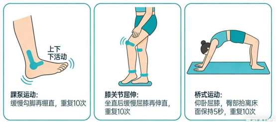 ·踝泵练习:勾脚尖、绷脚尖,每侧10次