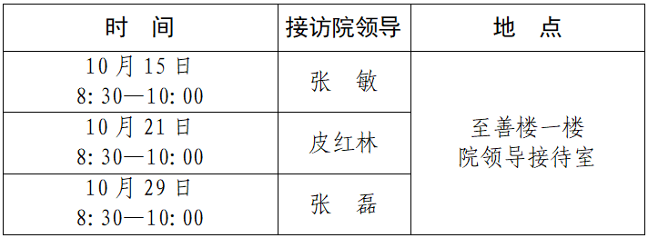 为进一步畅通医患沟通渠道,加强医院与患者、家属、职工及社会群众之间的沟通联系,提高医院民主管理和政务公开水平,提升群众就医满意度,按照《襄阳市中医医院院领导接待日制度》要求,现将2025年10月院领导接待日工作安排的有关事项公告如下: