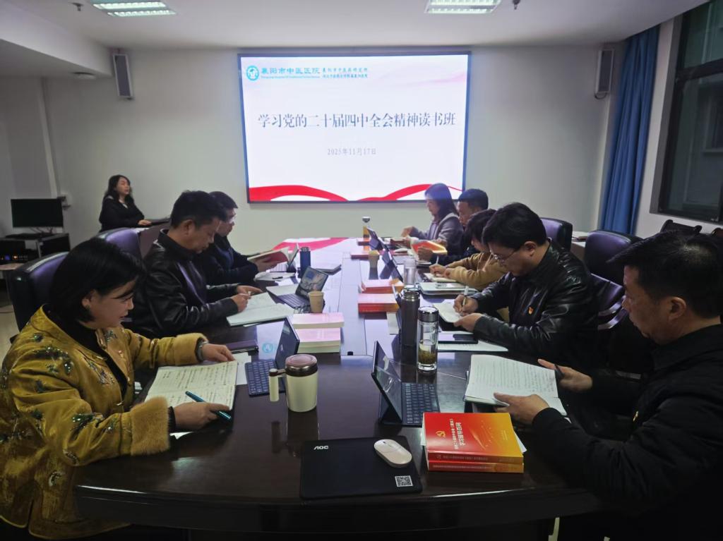 为深入学习贯彻党的二十届四中全会精神,引导党员干部切实把思想和行动统一到全会精神上来,11月17日至11月19日,襄阳市中医医院举办学习党的二十届四中全会精神读书班,院领导班子成员参加集中学习。